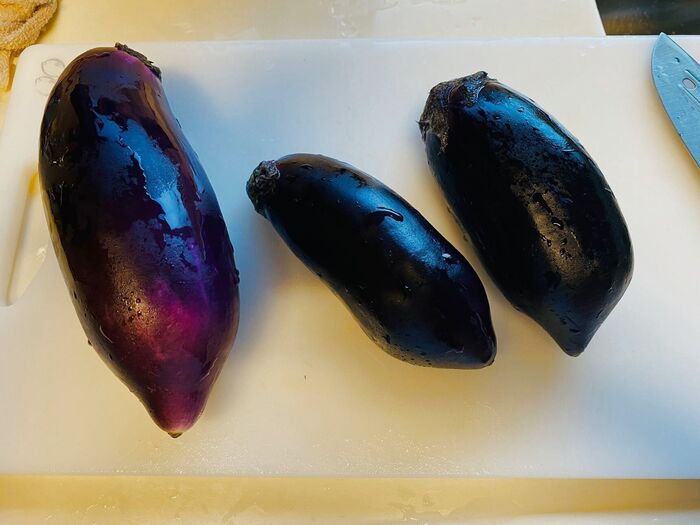 不揃い茄子を買ったらこんなに大きな茄子が入っていました。