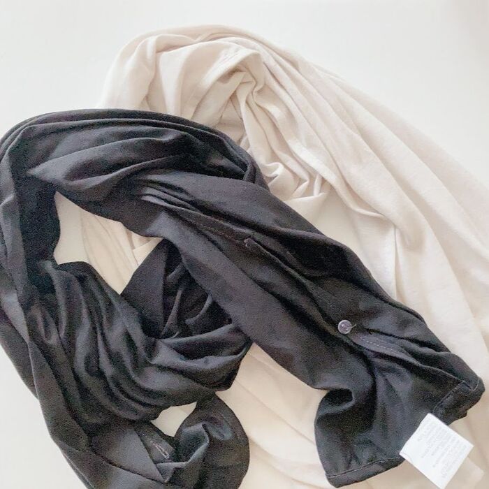 このストールは150㎝の布の両端にボタンが付いていて、筒状にして使ったり、平布で使ったりと使い方が自由自在!