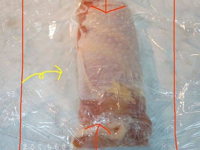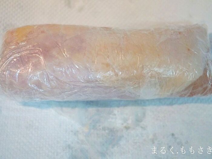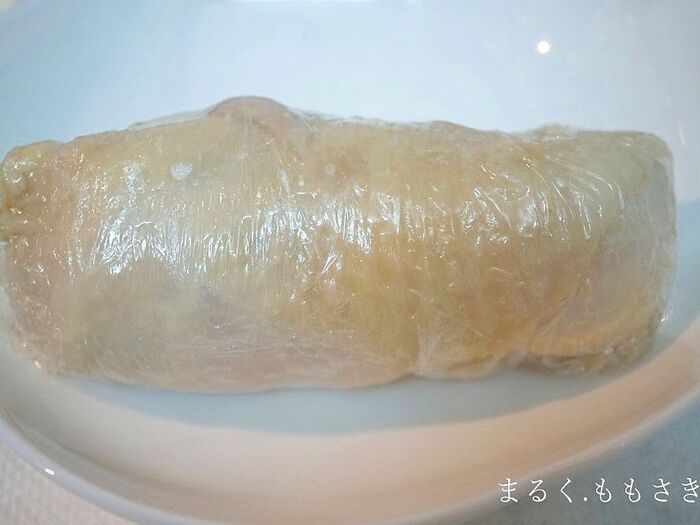 ラップを1方向から巻くより、2方向から巻くことでしっかり巻きやすいです。巻き寿司の要領で締めながら巻くことをお勧めします。