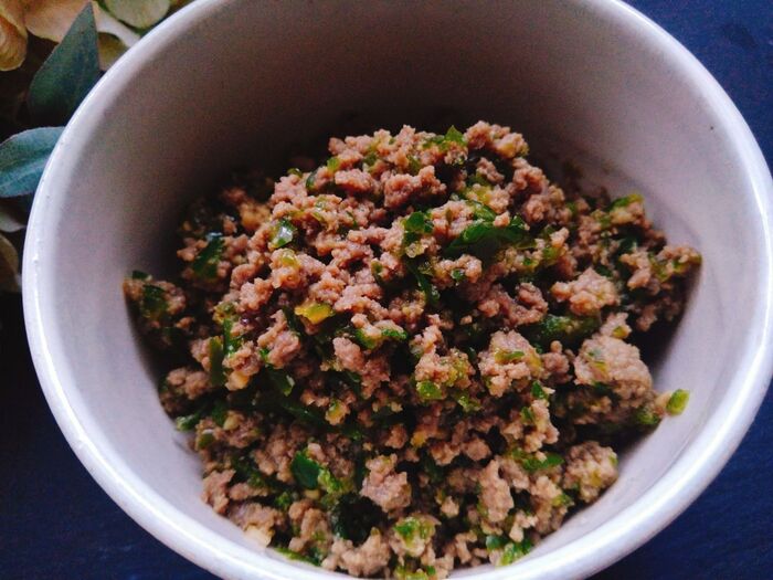 3.フライパンを熱してひき肉を入れてほぐしながら炒める