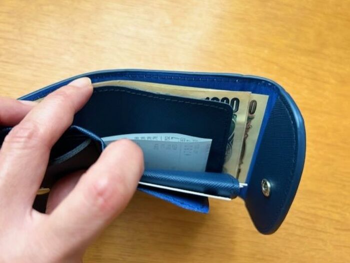 例えば、お札の種類で分けたり、お札とレシートで分けたり、商品券などを入れたりできて便利。