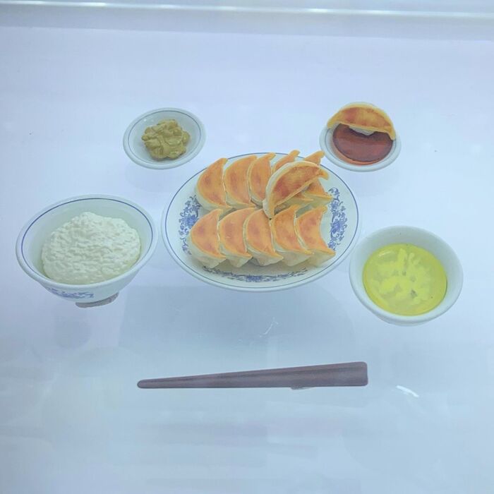 お目当てのぎょうざの満洲がディスプレイされていたのでパシャリ。料理を盛り付けた状態だったので、気になるお皿の柄は見えませんが、とってもかわいい♡絶対にゲットするぞ!と気持ちを高めます(笑)。