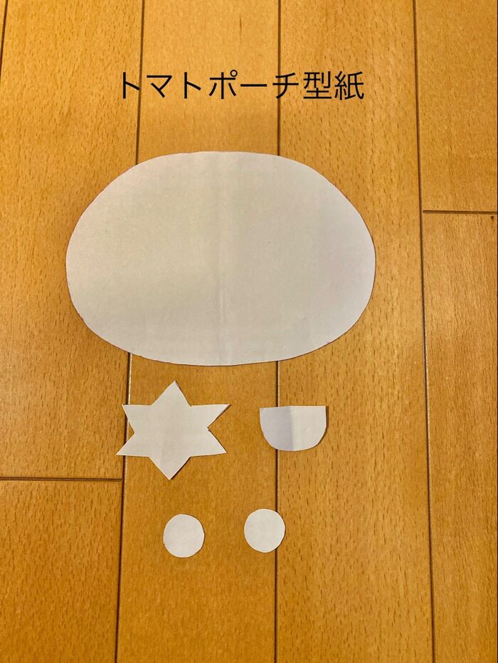 型紙は無くても大丈夫ですが、ポーチを複数作る時は、厚手の画用紙で作っておいて、フェルトに置いて、なぞってカットすると便利です。