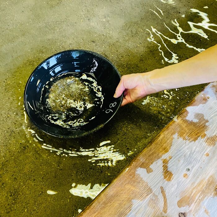 金の比重の違いを利用して水で洗いながら砂などを流します。