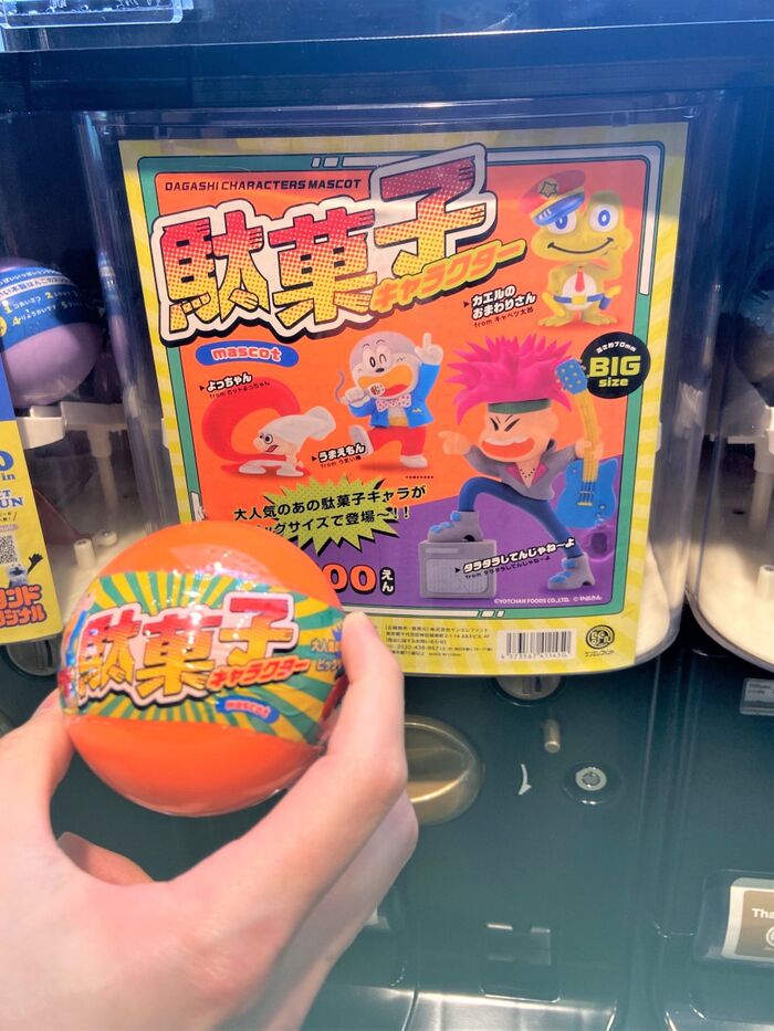 その名も「駄菓子キャラクター マスコット」。お値段はお高めの1回500円。