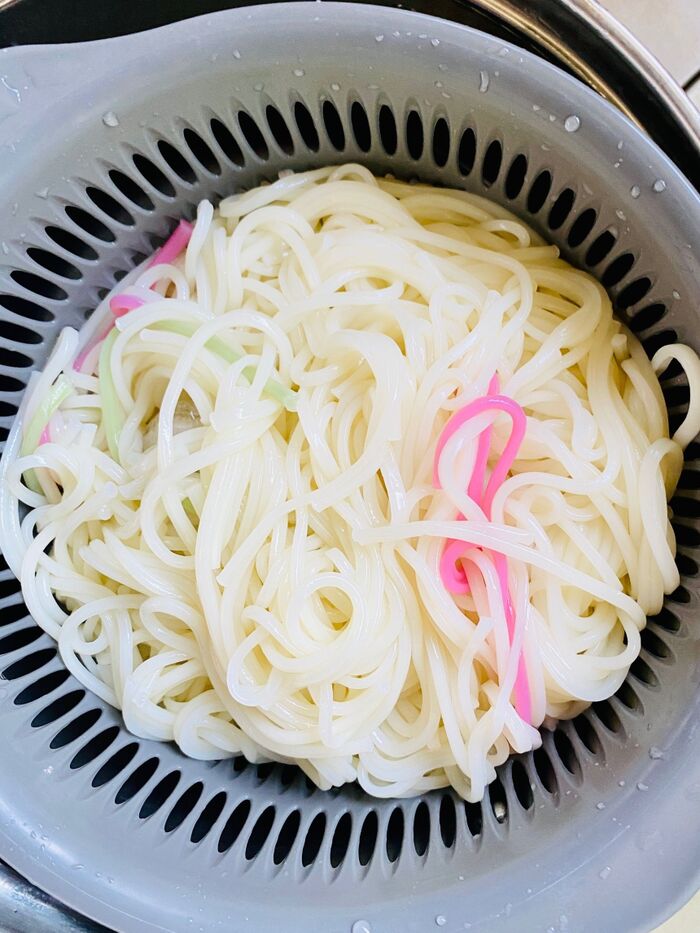 素麺はお好みの固さに茹であげ水気を切り冷やします。