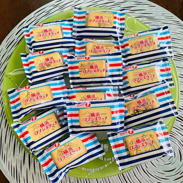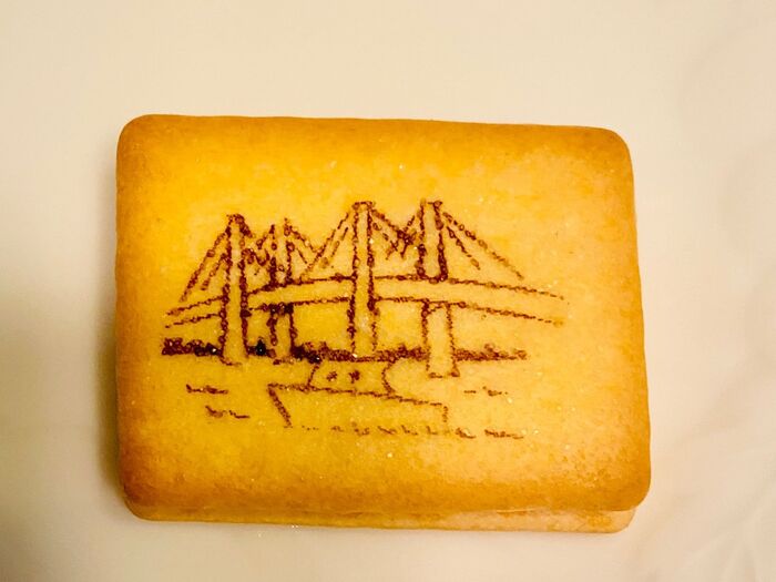 とってもおしゃれな横浜の情景をビスケットにしますよ。ビスケットとビスケットの間にバニラクリームをサンドしたとても丁寧なビスケットです。