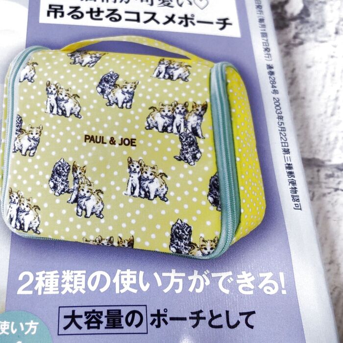 雑誌付録は、「ポール&ジョー ボーテ 猫柄が可愛い♡吊るせるコスメポーチ」です!
