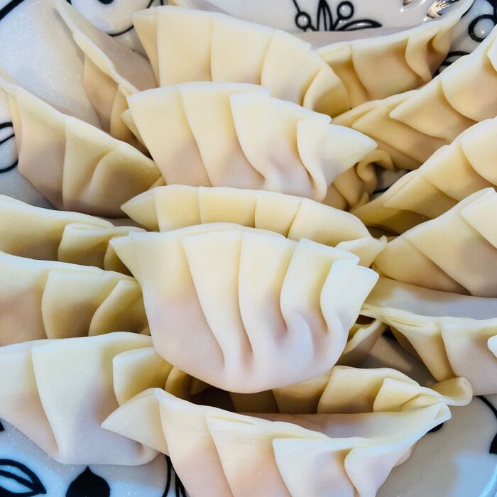 餃子の表面がきつね色になり、中まで火が通ったら取り出しお皿に盛り付け完成です。