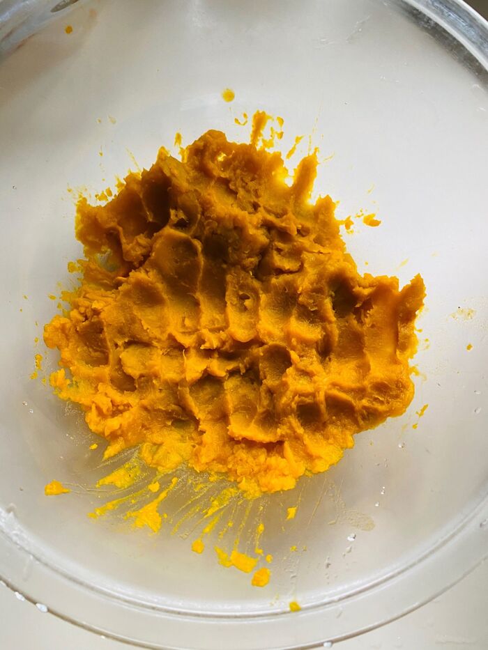 皮を取り除きマッシュします。