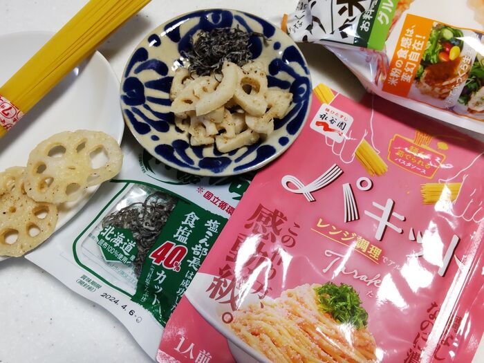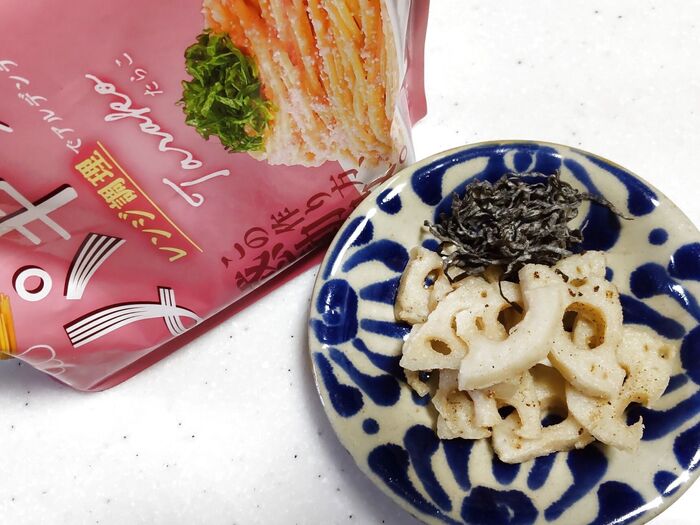 私は、米粉で揚げた蓮根と40%減塩の塩昆布を追加して、混ぜ混ぜしましたよ。