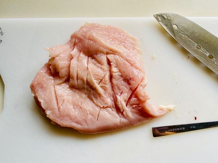 鶏ハムをスライスする時は、よく包丁を研いでお使い下さい。