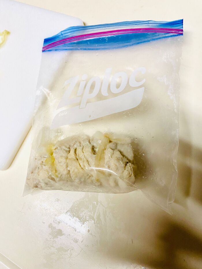 フリーザーバッグに入れて冷蔵庫で冷やします。