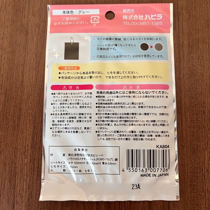 私が気になっていたカビっぽい?臭いを吊るすだけで対策してくれるのなら、ありがたい。