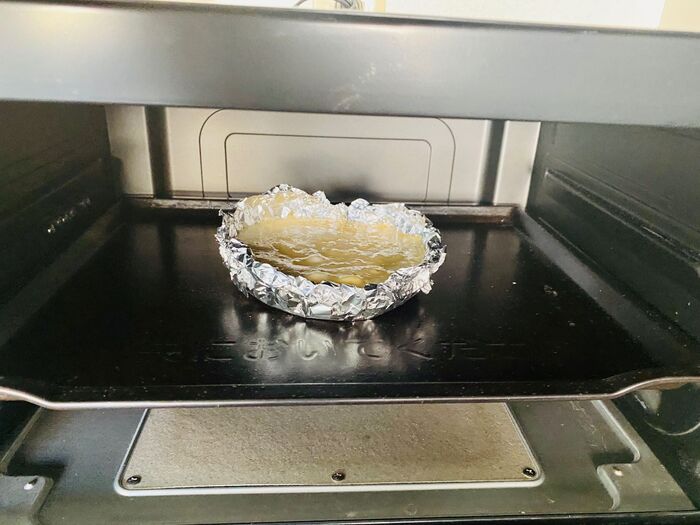 (くっつかないアルミシートは綺麗に剥がれるし、型の役目にもなって便利ですよ)