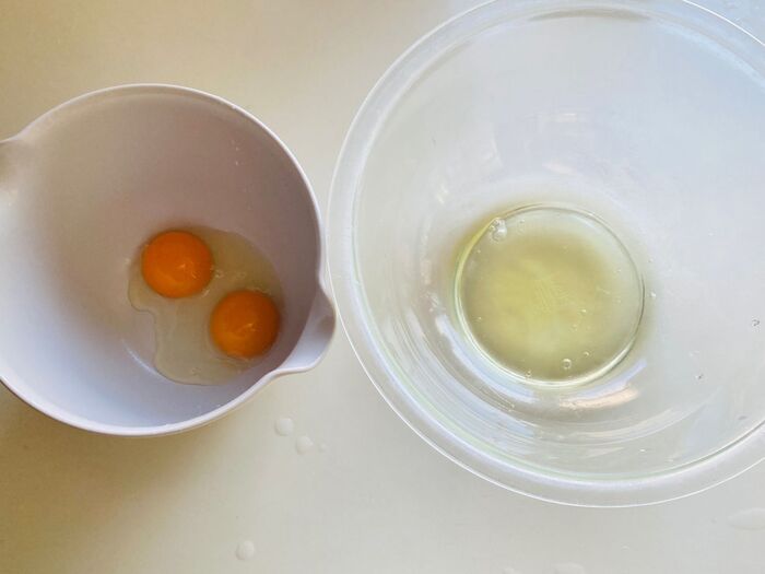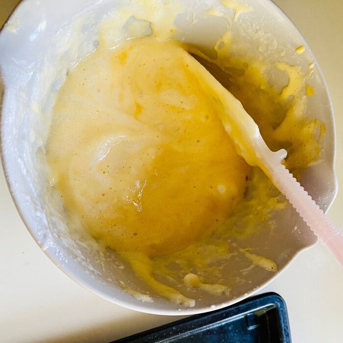 卵黄はよく混ぜ、砂糖を加えよく混ぜます。