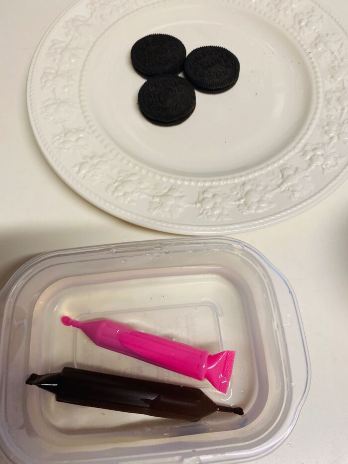 チョコペンでお絵描きしたオレオも好きなように飾ります。