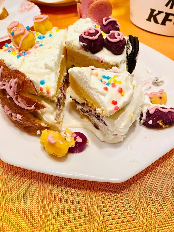 ご馳走がいっぱいで、余ったケーキを次の日食べましたが、ふわふわで美味しいかったですよ。
