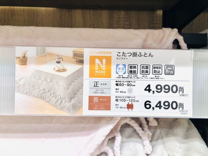 ニトリだからと言って全てがNウォームではないようで、やはりNウォームでない商品の方が低価格の設定になっていました。