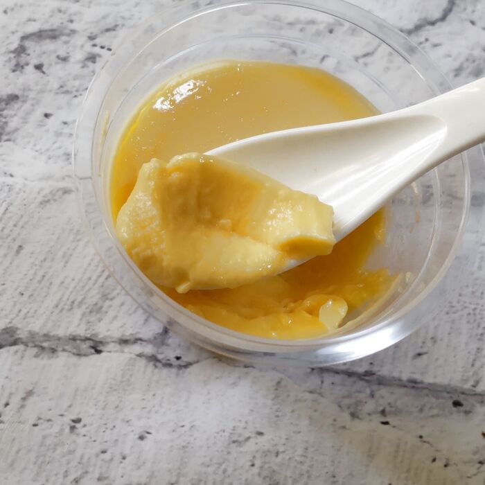 残すは最後の一品ですが、契約農場のたまごのプリンです。お値段は、129円です。