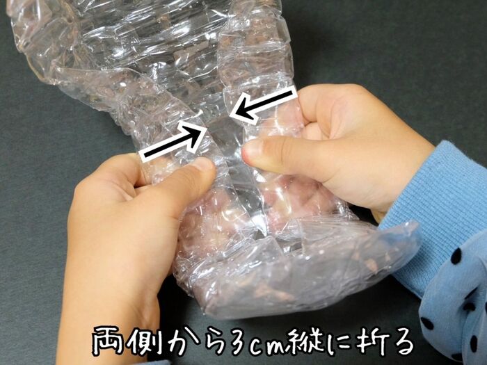2.両側から3cmくらいのところで折り曲げます。