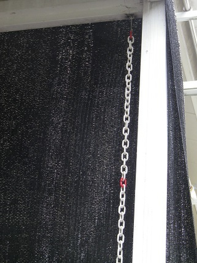 今回、2本のチェーンを使用しましたが、3本だと地面までつき、石などの重石とつなげておくと、地面にきちんと雨だれが到着しますよ。