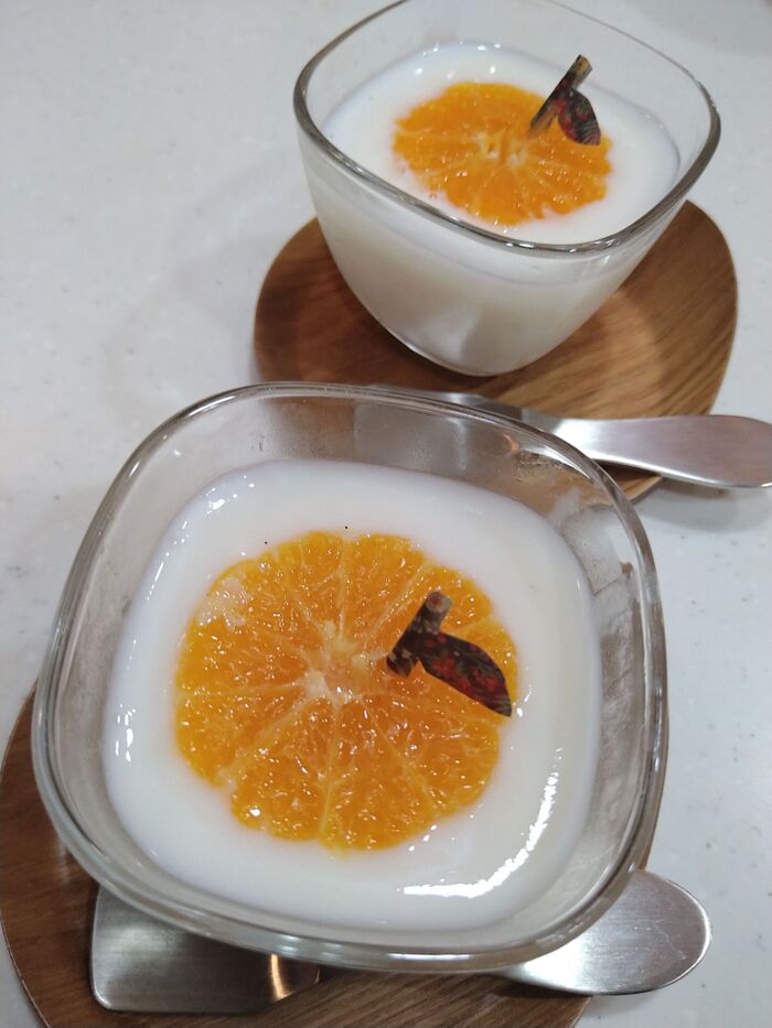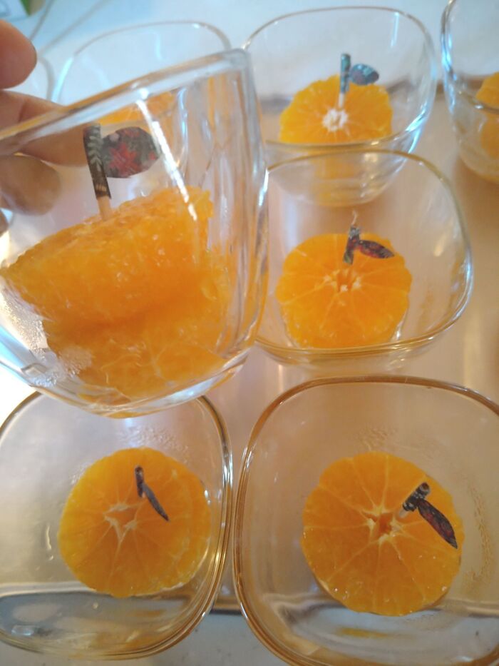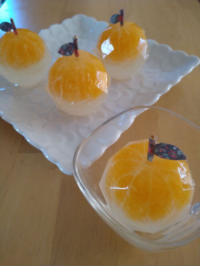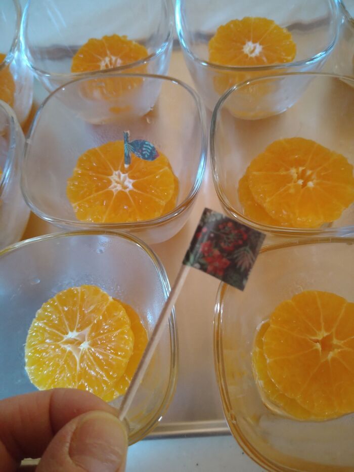 シロップ液も、牛乳寒天液も人肌に冷ましてからミカンに浸して下さいね。