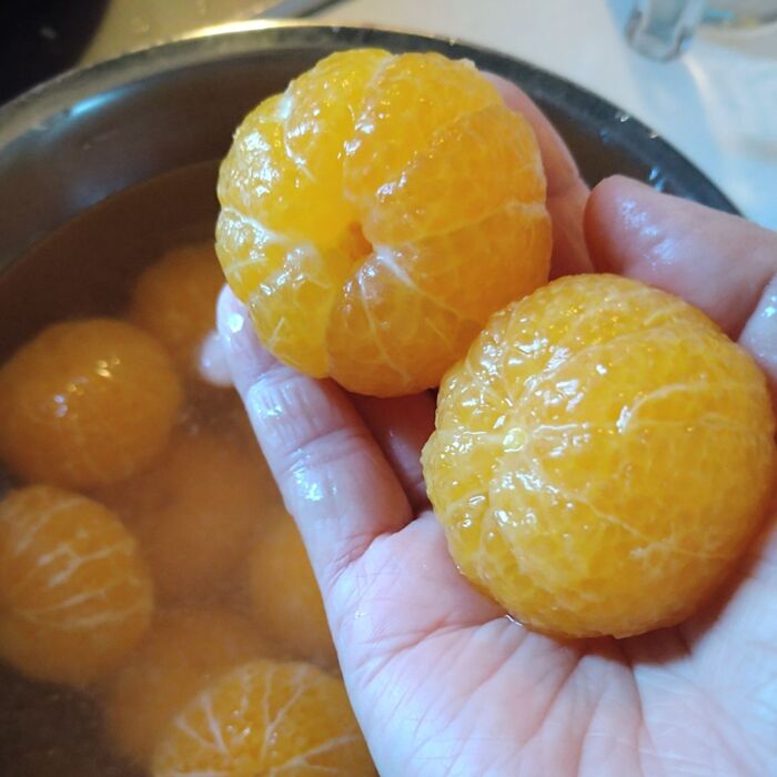 両手で、クルクル撫でると白い筋がツルリと剥け缶詰のミカンのようになります。