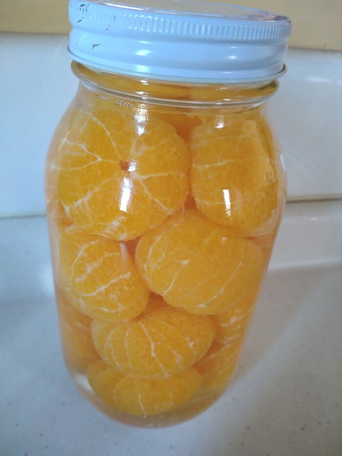 煮沸消毒した瓶にいれシロップを注ぐとミカン缶風の完成です。