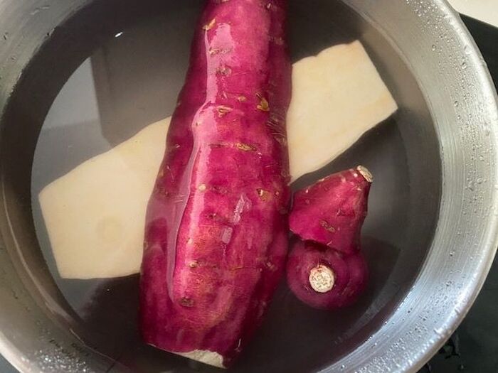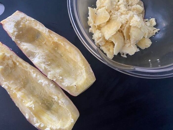 くり抜いたさつまいもの中身とaを混ぜ合わせ