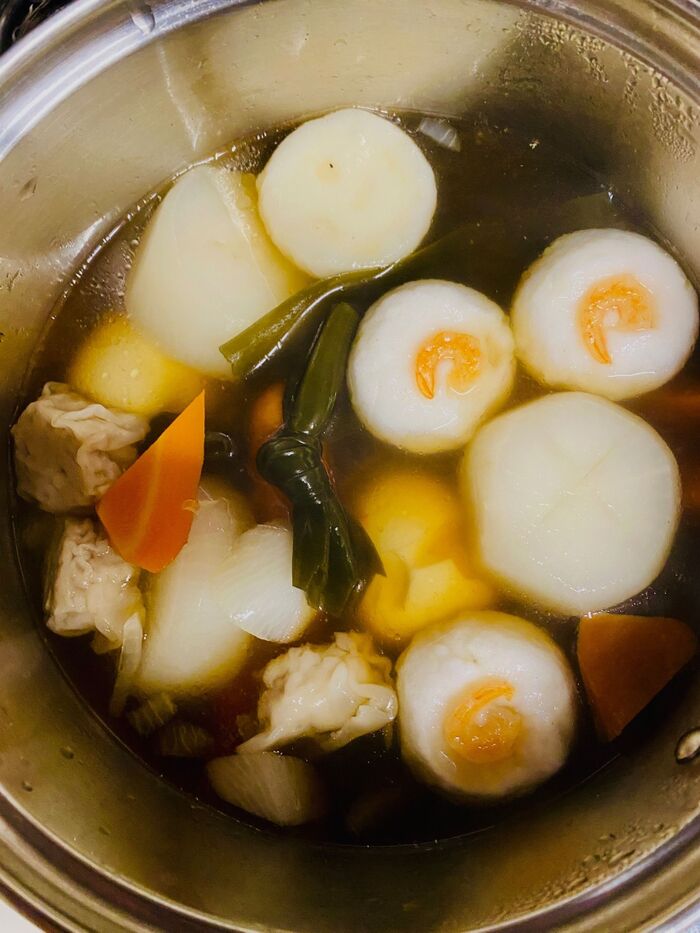 こんにゃく、ちくわ、ガンモ、茶巾餅などお好きなものでどうぞ!