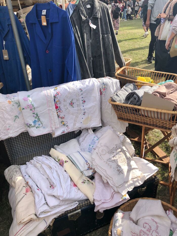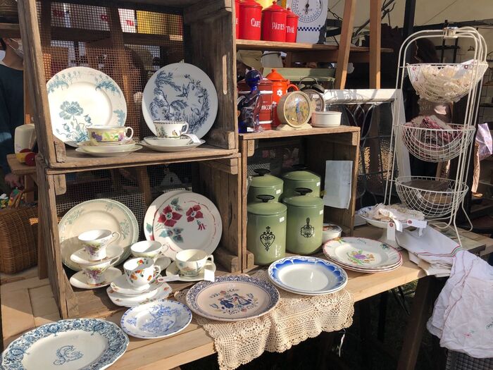 私のお目当ては、食器や布物のヴィンテージ品。