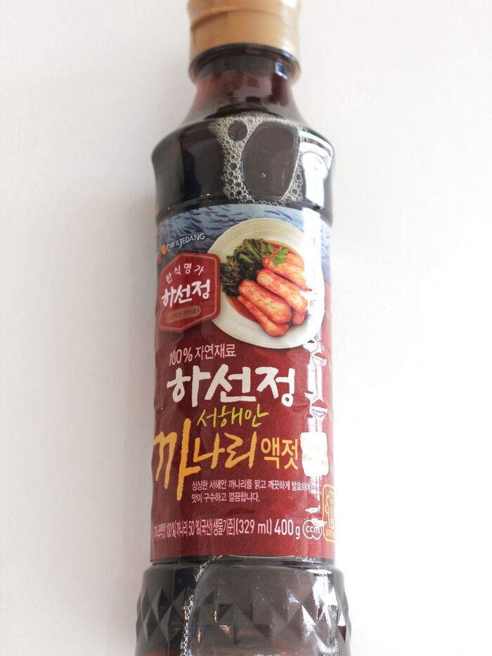 こちらが「カナリエキス」(いかなごのエキス)。キムチ作りによく使われる調味料です。