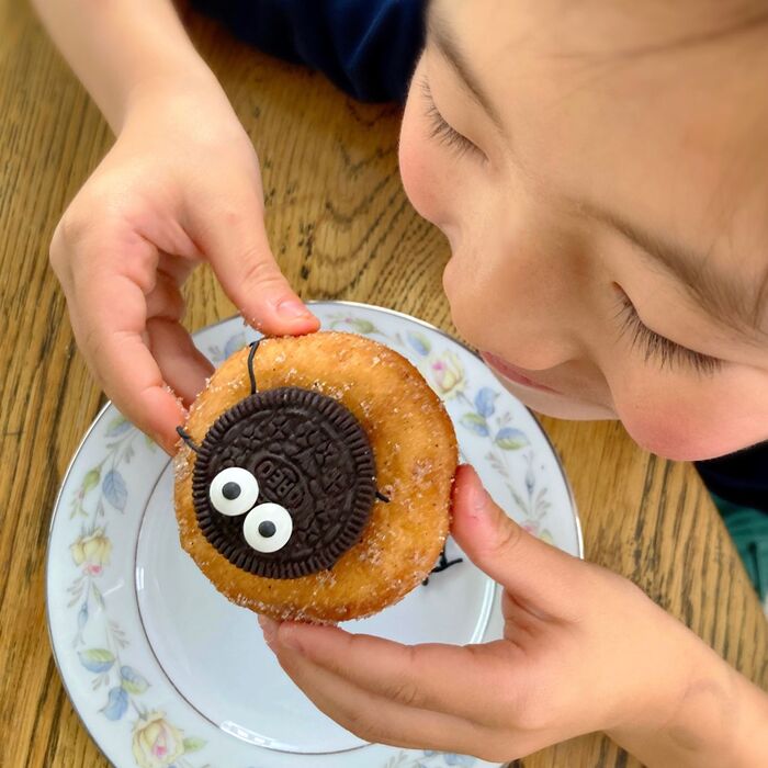 ドーナツの穴を塞ぐようにオレオを乗せます。