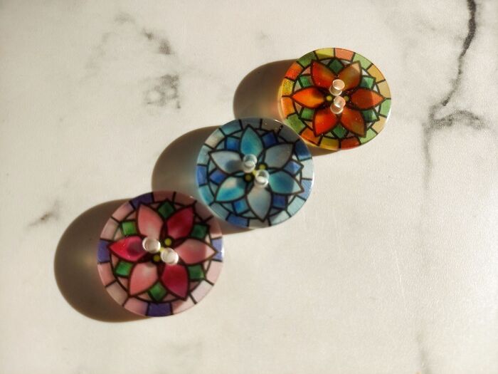 キャン★ドゥのステンドグラス風ボタン、