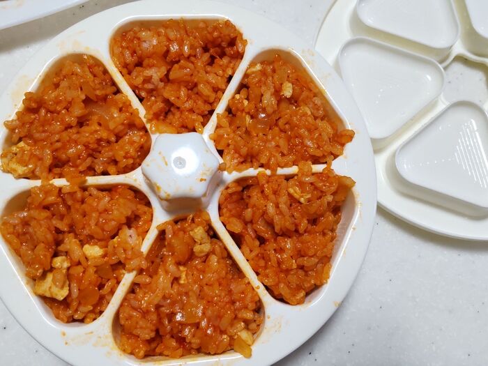 型を使うので、しばらく作り置きしがちなパーティーレシピ用に適しています。手で握らないから衛生的ですよ。余ったチキンライスおむすびは、ラップをして冷凍できます。