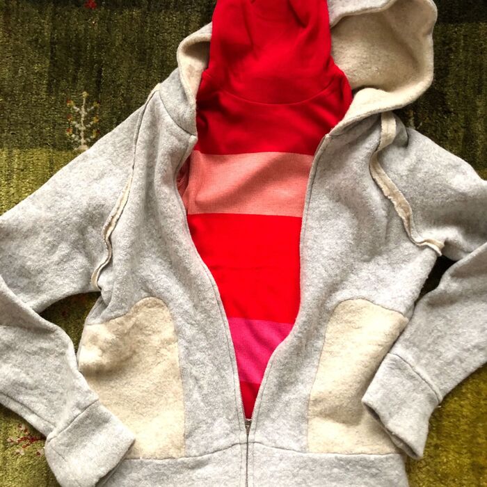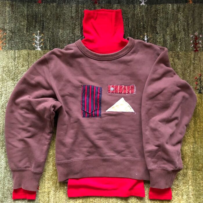 マリメッコ のはぎれでリメイクしたUNIQLOトレーナーにもよく合いました。