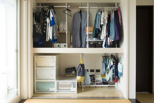 例えば、子どもたち3人分の洋服。2階にある和室の押し入れにまとめて収納していますが、自分の洋服は自分で管理するのが小堀家のルールです。
