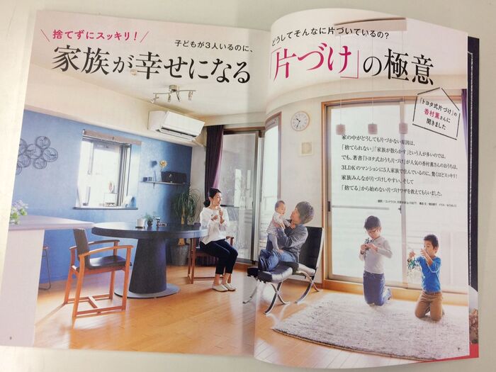 朝、3人の子どもを保育園、幼稚園、小学校に送り出したらすぐに仕事です。ライフオーガナイザー®の資格を取った3年半ほど前から、仕事の柱は大きく3つ。一番好きな仕事でもあるお客さんの家での片づけ、自宅や企業などでの講座、そして執筆活動です。執筆は暮らしニスタを始め、各方面のサイトなどにも片づけの記事が掲載されていて、毎日とても充実しています。
