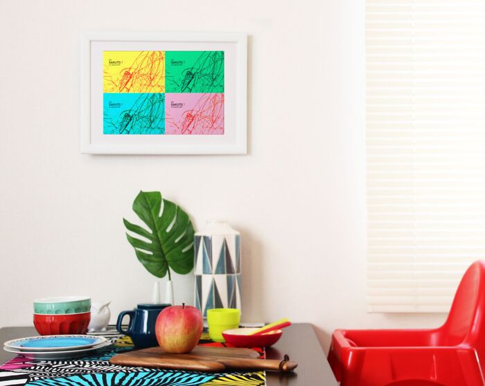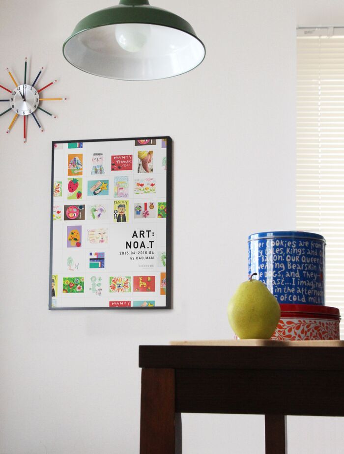 私の自信作は、たまった子どもの作品を一度に飾れるアートポスター。お子さんの個性溢れる作品を“しまう”のではなく、“飾る”という意識のご家庭がもって増えてほしい。そして、そこからまたモノ作りがつながっていったらいいなと願っています。
