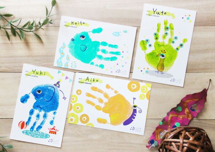 子どもの手形を使ってポストカードを制作