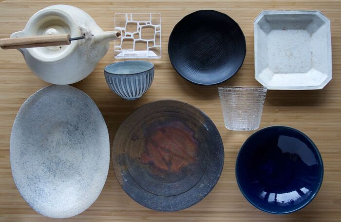実家から持ってきた備前焼のお皿などお気に入りの食器。