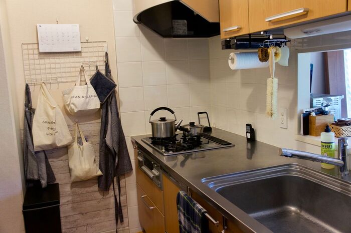 毎日使っているキッチンの様子。掃除はカンタンにできるように、調理台にはなるだけ物を置かないようにしているそう。