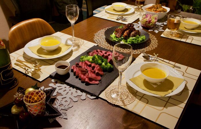 SNSに載せるつもりはないけれど、記念として撮影したというクリスマスの食卓風景。