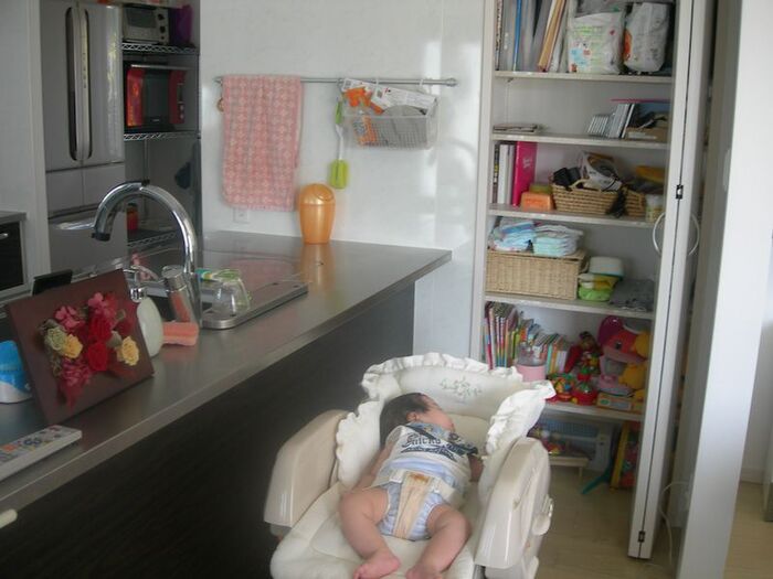 物をグループ分けして収納するという概念がないので、買ったものはとりあえず使いやすい棚にどんどん押し込むわけです。当時の自宅の写真を見て自分でもびっくりしたんですが、粉ミルクの横に殺虫剤がドーン(笑)。育児関係のプリントは積み上がって地層ができていて、プリントを探しても、この辺かな?あ、違った!バラバラバラ……みたいな(笑)。がんばって整理しようとファイルを買ってきたら、背表紙の5倍に膨れるくらい入れちゃって持てないという(笑)。
