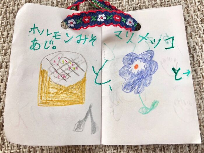 上2つの写真は、お嬢さんの手作り絵本『ママの好きなもの図鑑』より。家族愛が伝わります。