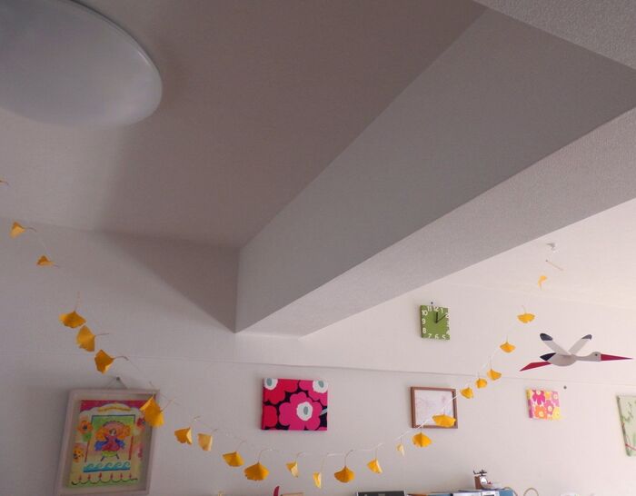 おうちのインテリアもそうで、子どもの絵を貼りまくって天井からいろんなものを吊り下げいて、本当に文化祭みたいで(笑)。でもさすがに落ち着こうと。今は、我慢して我慢して引き算して引き算して(笑)、やっと北欧っぽくなってきたかな。でも天井に毛糸を渡らせて、子どもが作った折り紙を吊るしたり、七夕などイベントの時は飾りをつけたりしちゃいますね。子どもの友達が遊びに来たときは、ネット代わりにして風船バレーもしています。