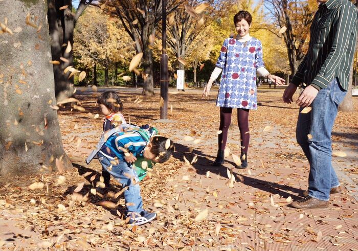 もともと、非日常というか、何かしらおかしいこと、ワクワクすることが好きなんです。「ときめく」とか「すてき」とかじゃなくて、「おかしい」こと(笑)。だから、子どもたちにも、「こんなことやっていいんだ!」って思われるようなことをしてあげたい。お風呂でおにぎり食べさせてみたりとか、大きな木を拾ってリビングに置いてみたりとか。娘とお風呂に入る前に、2人ですっぽんぽんで、夫と息子が遊んでいるところを「うわぁぁぁぁ!」って言いながら一周してみたりとか(笑)。