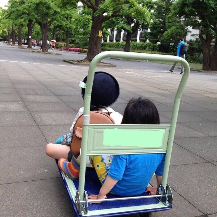 台車でいざ幼稚園へ!!子どもは大喜びです。