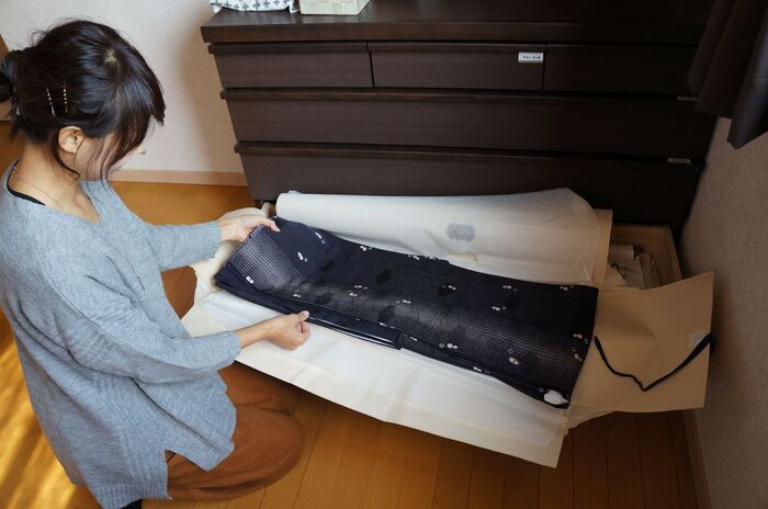 着付け師のかたと一緒にお宅に訪問して、着物に合わせてセットします。
